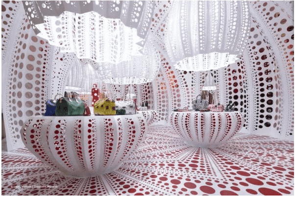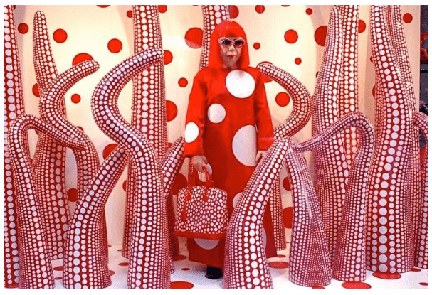 👗 Помимо живописи она создавала моду — сотрудничала с Louis Vuitton, создавая яркие коллекции с её фирменными точками.