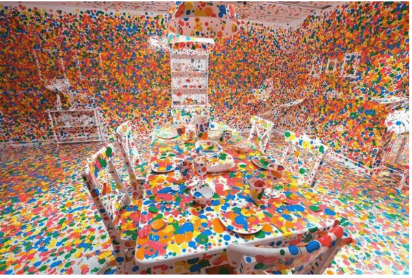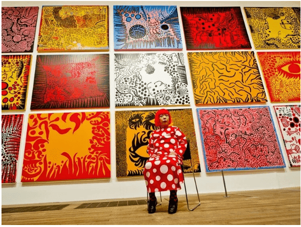С самых первых шагов в искусстве у неё сформировался свой неповторимый стиль — она покрывала всевозможные предметы плотным узором из горошка. Элемент, казалось бы, детской наивности, в её исполнении превращался в визуальную одержимость. Примечательно, что обучалась она живописи всего один год — и этого хватило, чтобы доказать: её талант — врождённый.