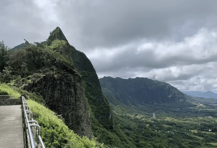 Во время нападения в понедельник они находились на смотровой площадке Пали на острове Оаху (на фото)